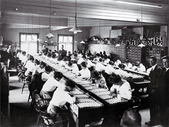 Clerks sort through the ballots before drawing the first ballot in the General Election of 1914